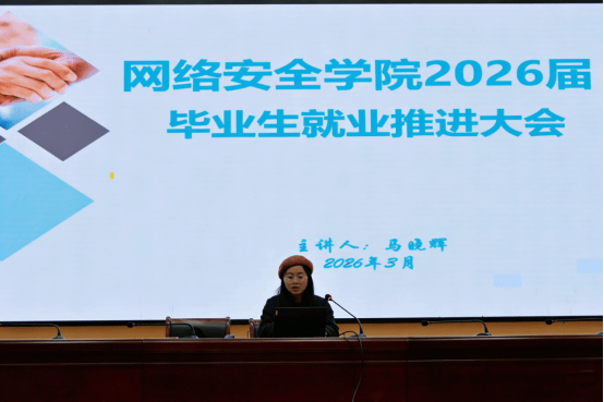 马晓辉老师围绕当前就业市场、发展趋势及学院就业工作展开讲解。他结合网络安全领域的就业前景与人才需求,深入分析了毕业生在求职过程中面临的机遇与挑战,提醒同学们要认清就业形势,主动调整求职心态。