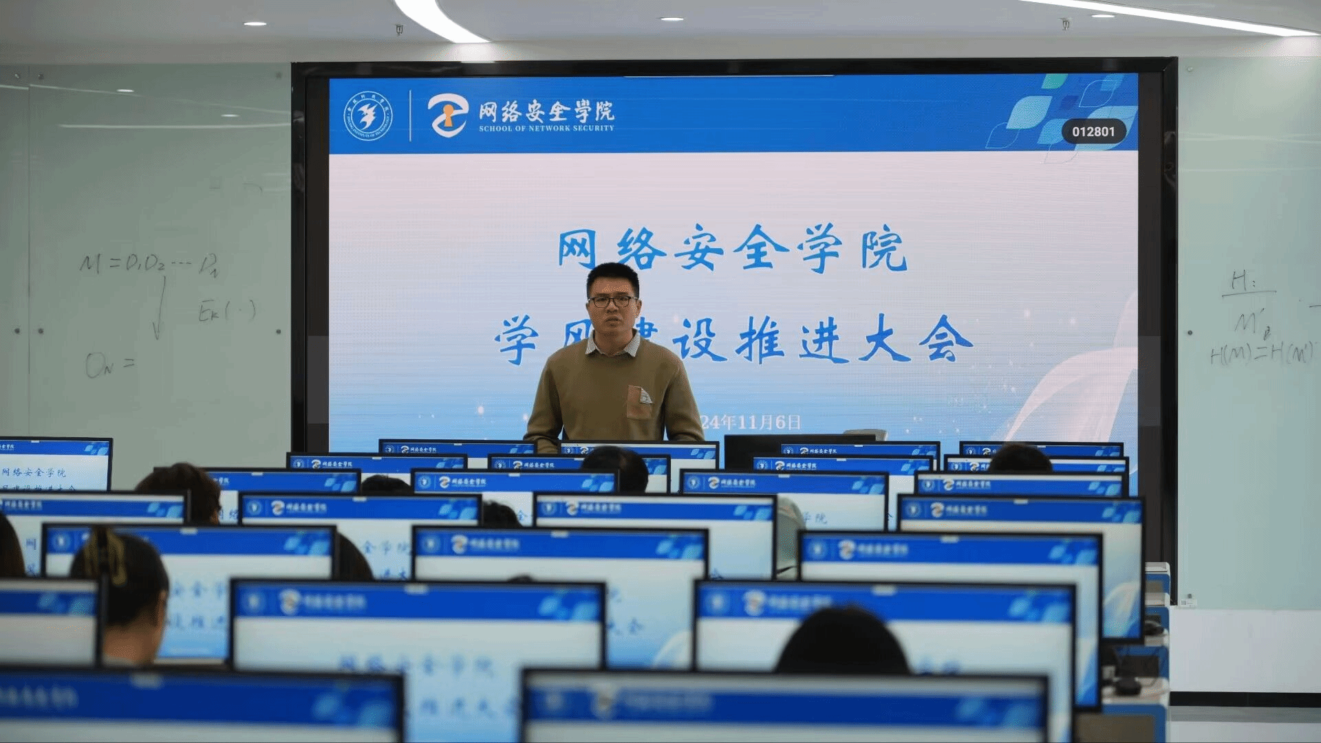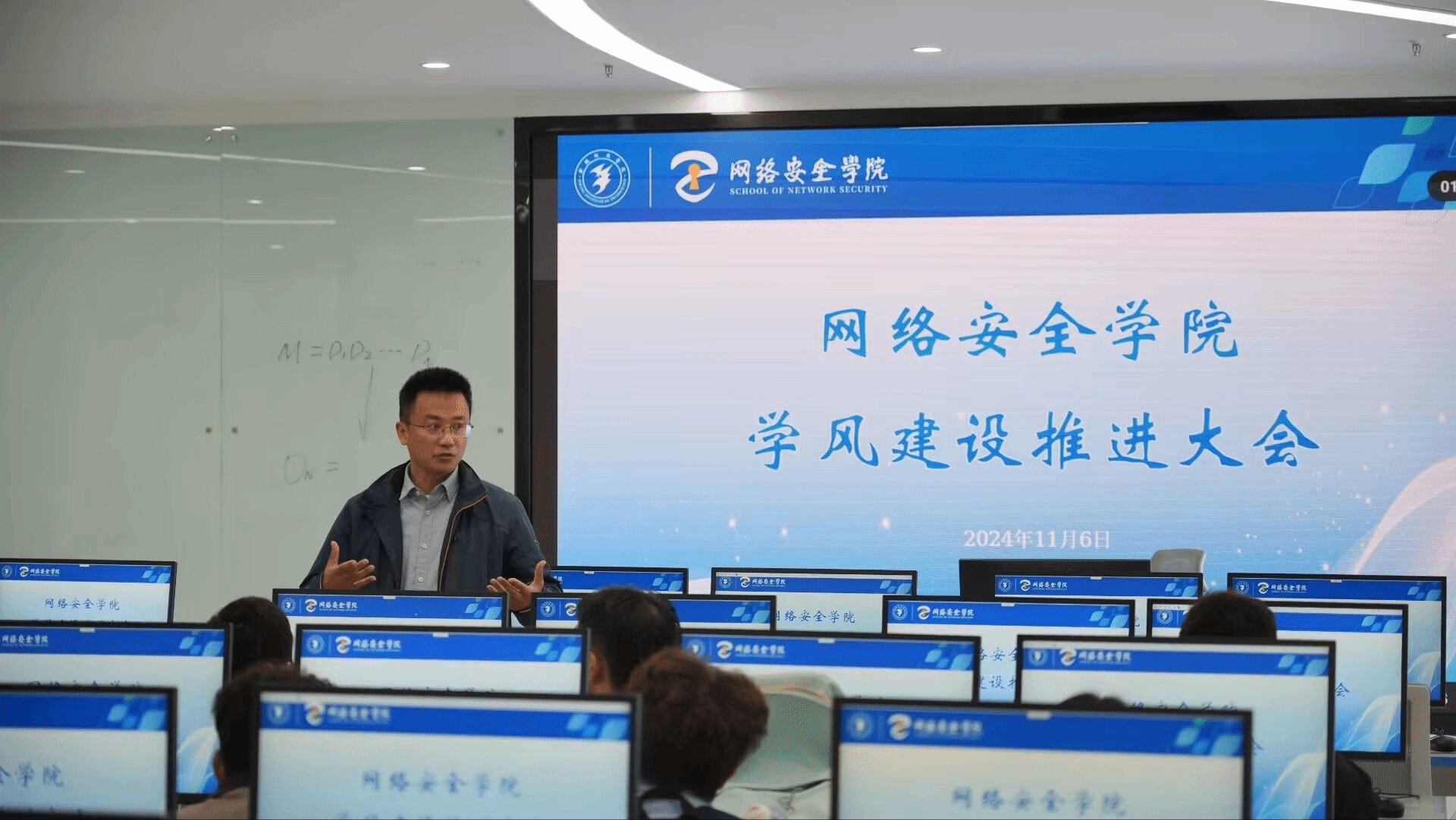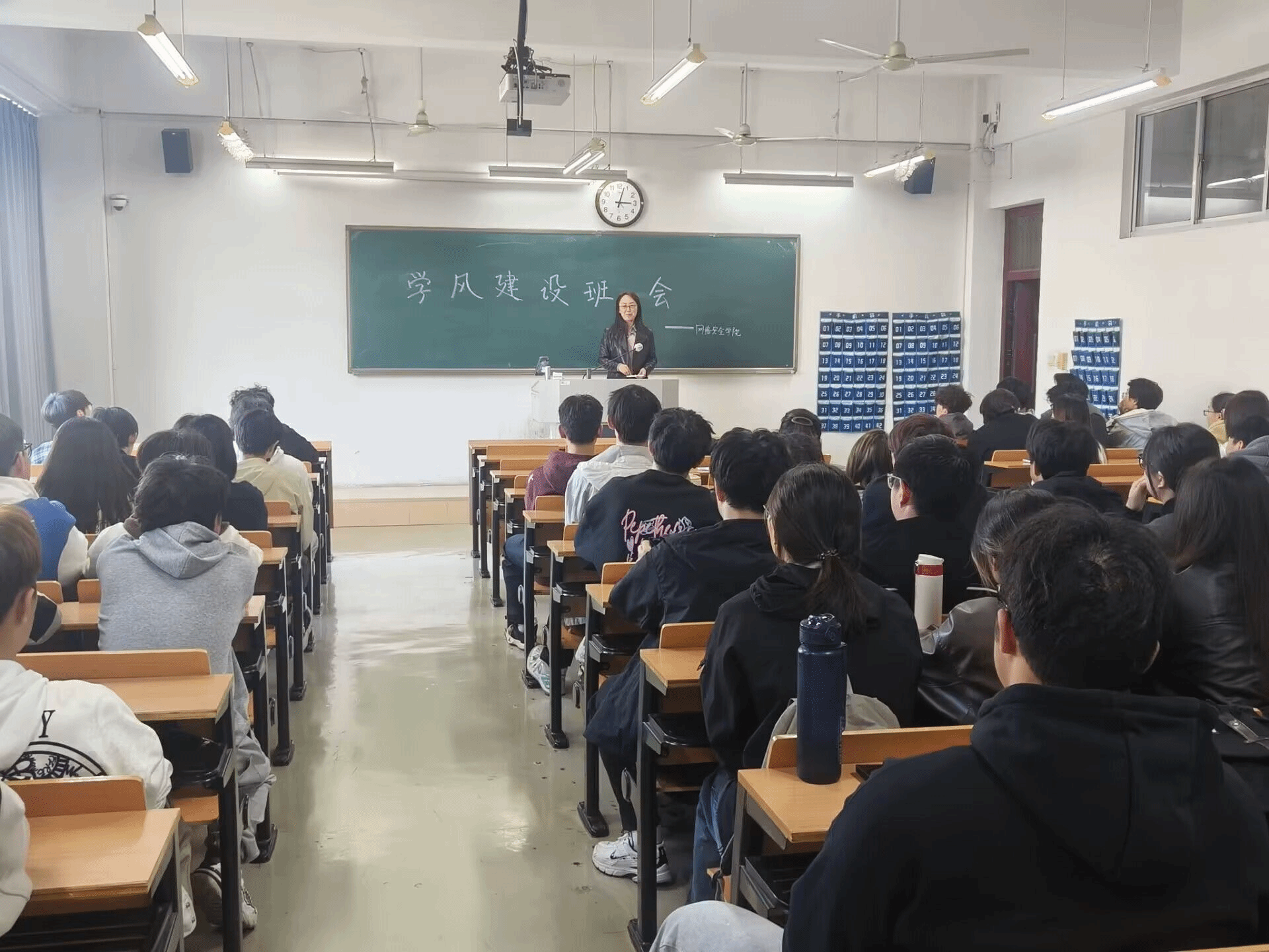 首先,主持人孙垒老师对最近学生上课情况进行了评价,指出了个别同学在上课时存在的问题。接着对我院学生上课表现提出了要求,鼓励学生端正学习态度,上课认真听讲,班委加强监督,起带头作用,积极应对学校评估工作。接下来,副院长阎浩着重强调了评估工作对学校未来发展的重要性,详细介绍了评估工作的流程和内容,评估工作由线上评估和线下访谈组成,督促学生认真对待评估,确保课堂纪律,积极参与课堂和学校活动,展现学校良好形象,以促进学校整体发展。学风建设推进大会在热烈的掌声中落下了帷幕,通过此次大会,学生们深刻意识到学风建设的重要性,为接下来的学校评估工作做好了准备。