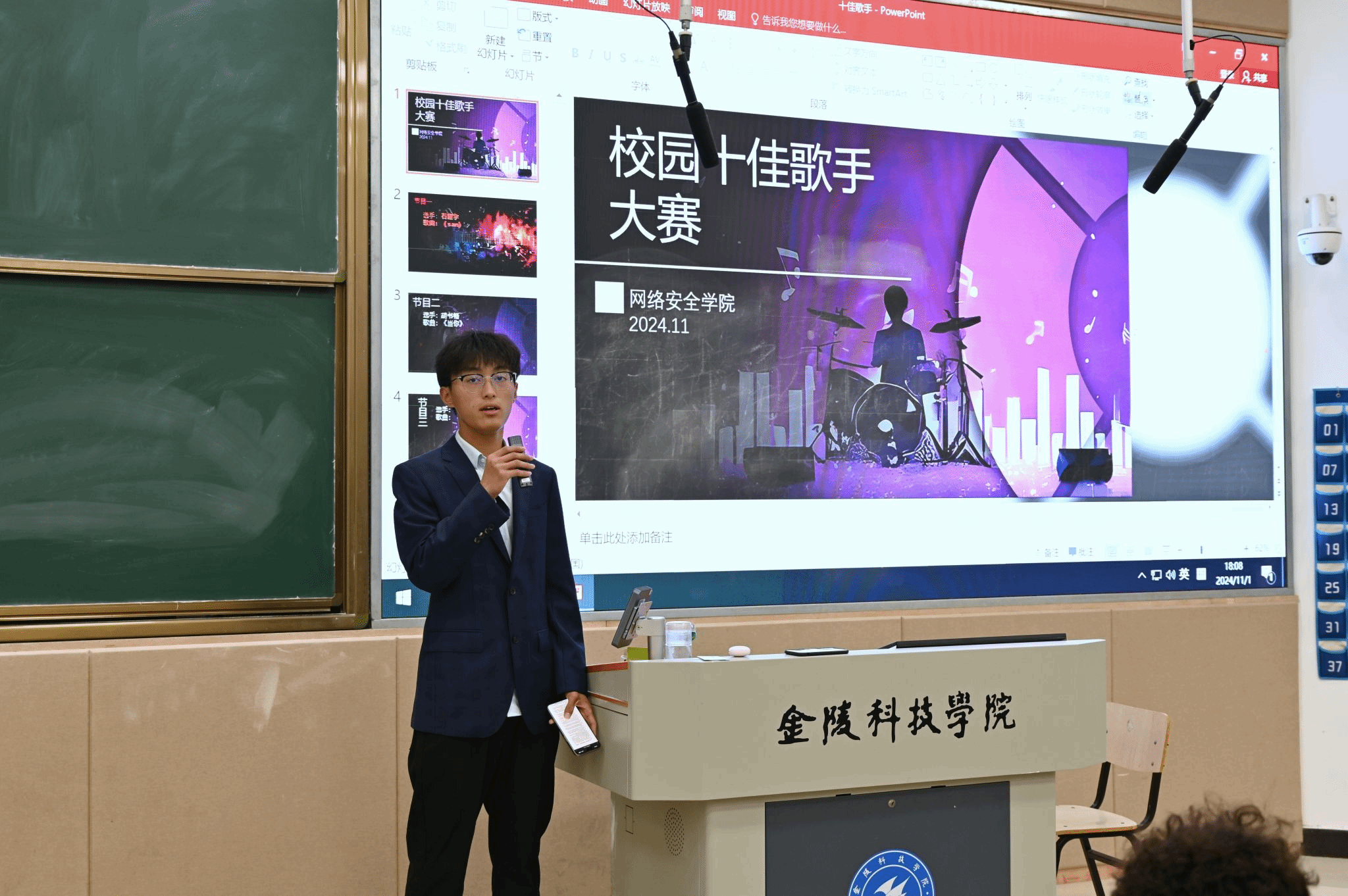 为给予学院学子一个优质的展示平台,丰富校园生活,11月1日晚,WilliamHill中文备受瞩目的校园十佳歌手大赛在教学楼8100举行。十余名怀揣对音乐热忱的网安学子齐聚一堂,用歌声照亮了校园的夜晚。