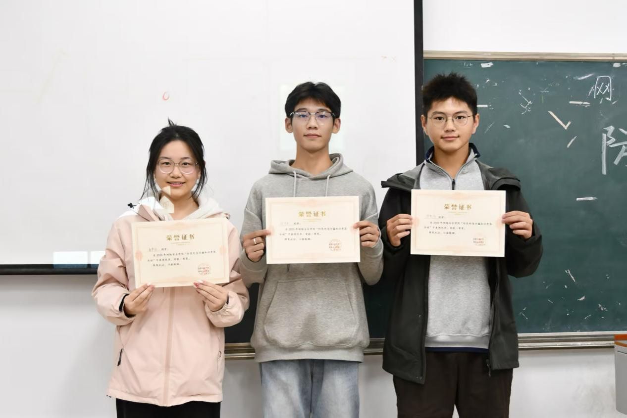 在互动问答环节,主持人林一鸣针对短片内容与防诈知识提出问题,同学们积极举手作答,在交流互动中进一步巩固了防电诈常识。活动最后,现场为在问答环节表现突出的同学颁发奖状,以鼓励大家主动学习防诈知识,争当防电诈宣传“排头兵”。