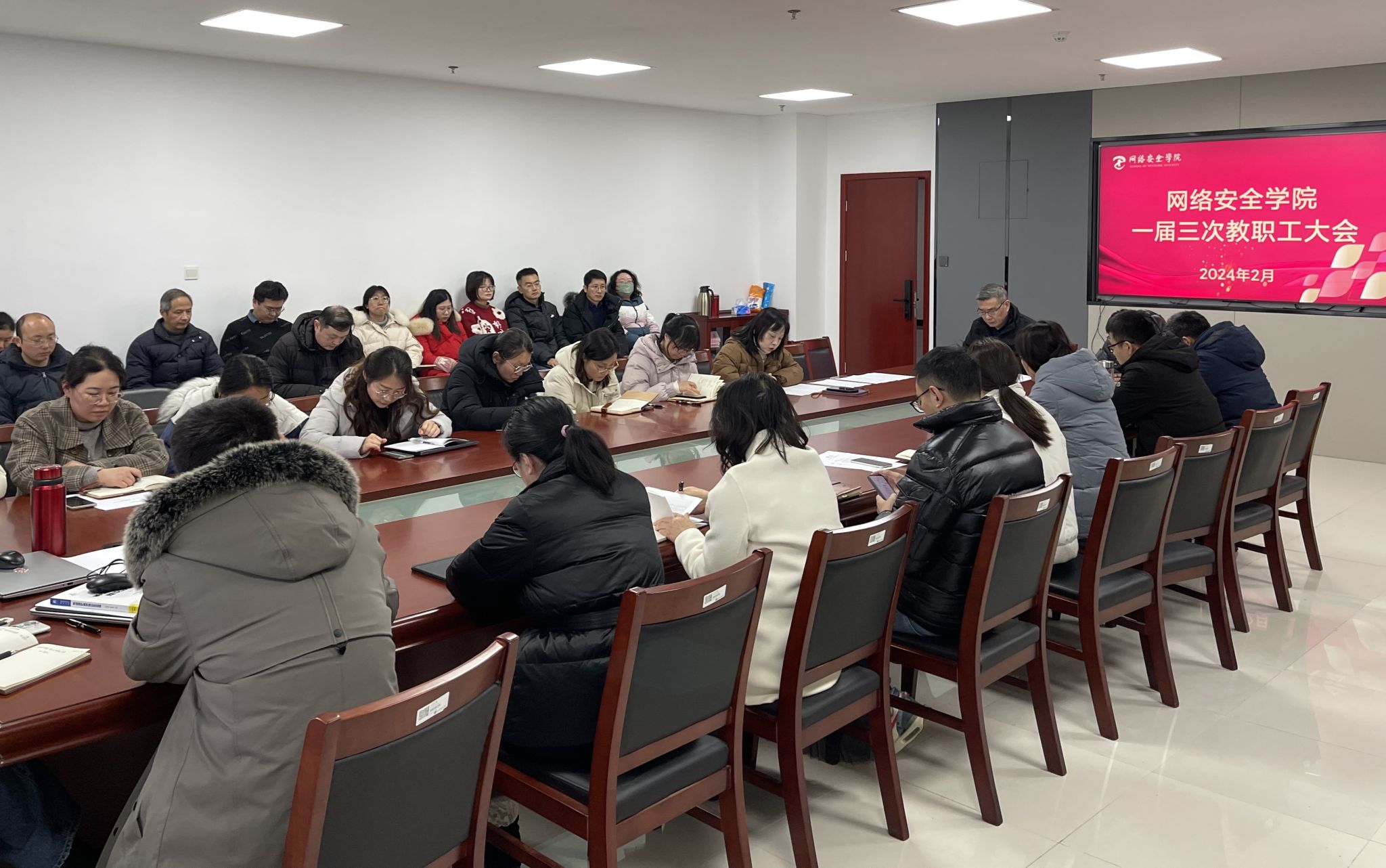 2月28日,网络安全学院在科技楼4号楼1218会议室召开第一届第三次教职工大会,学院党政领导及全体教职工参加了大会。大会由学院分工会主席蔡亚萍主持。