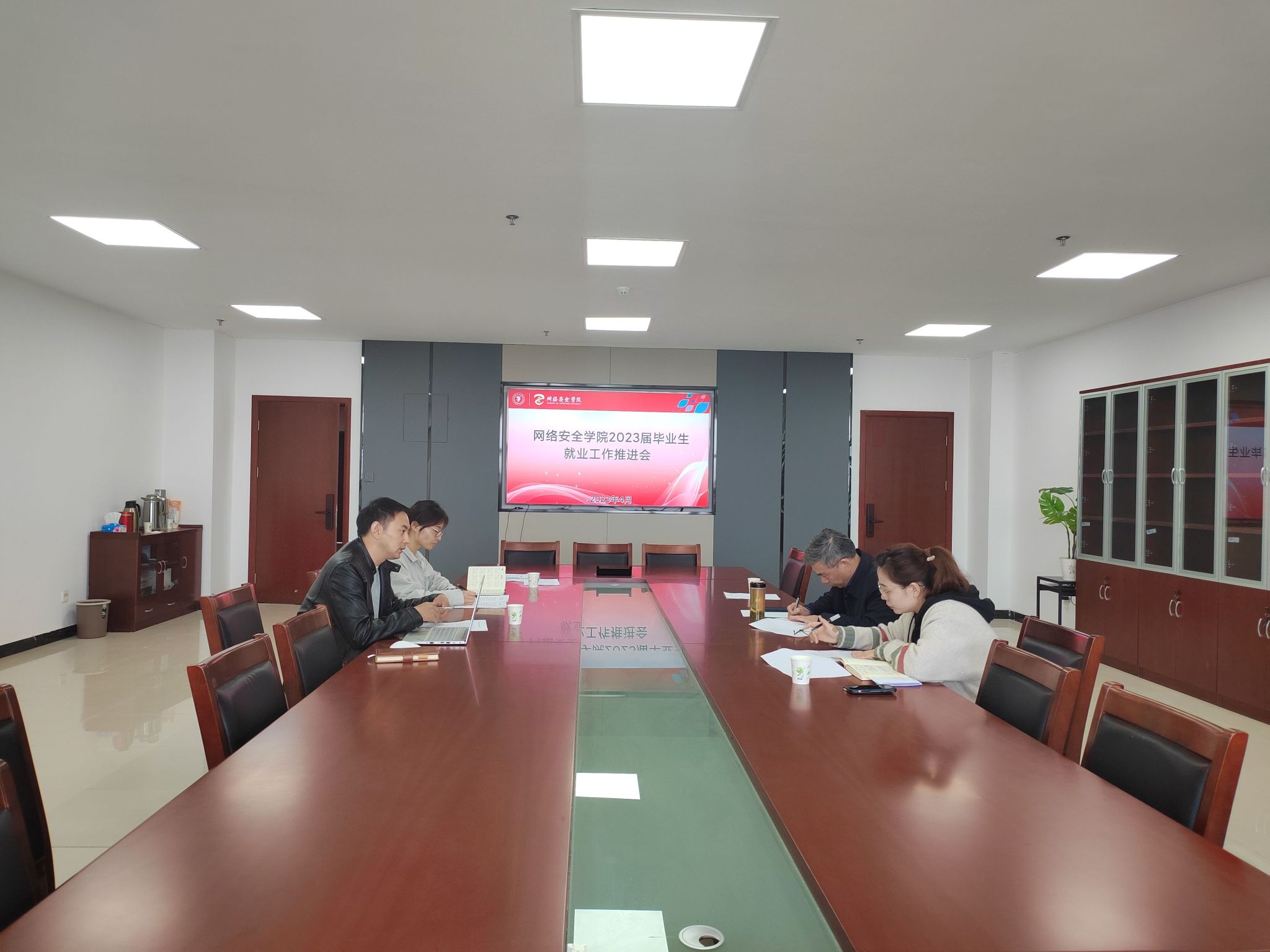 为增强做好就业工作的紧迫感和责任感,4月26日下午,网络安全学院在科技楼4-1218会议室召开了2023届毕业生就业工作推进会。院党总支书记、系主任、毕业班班主任、辅导员参加了会议。
