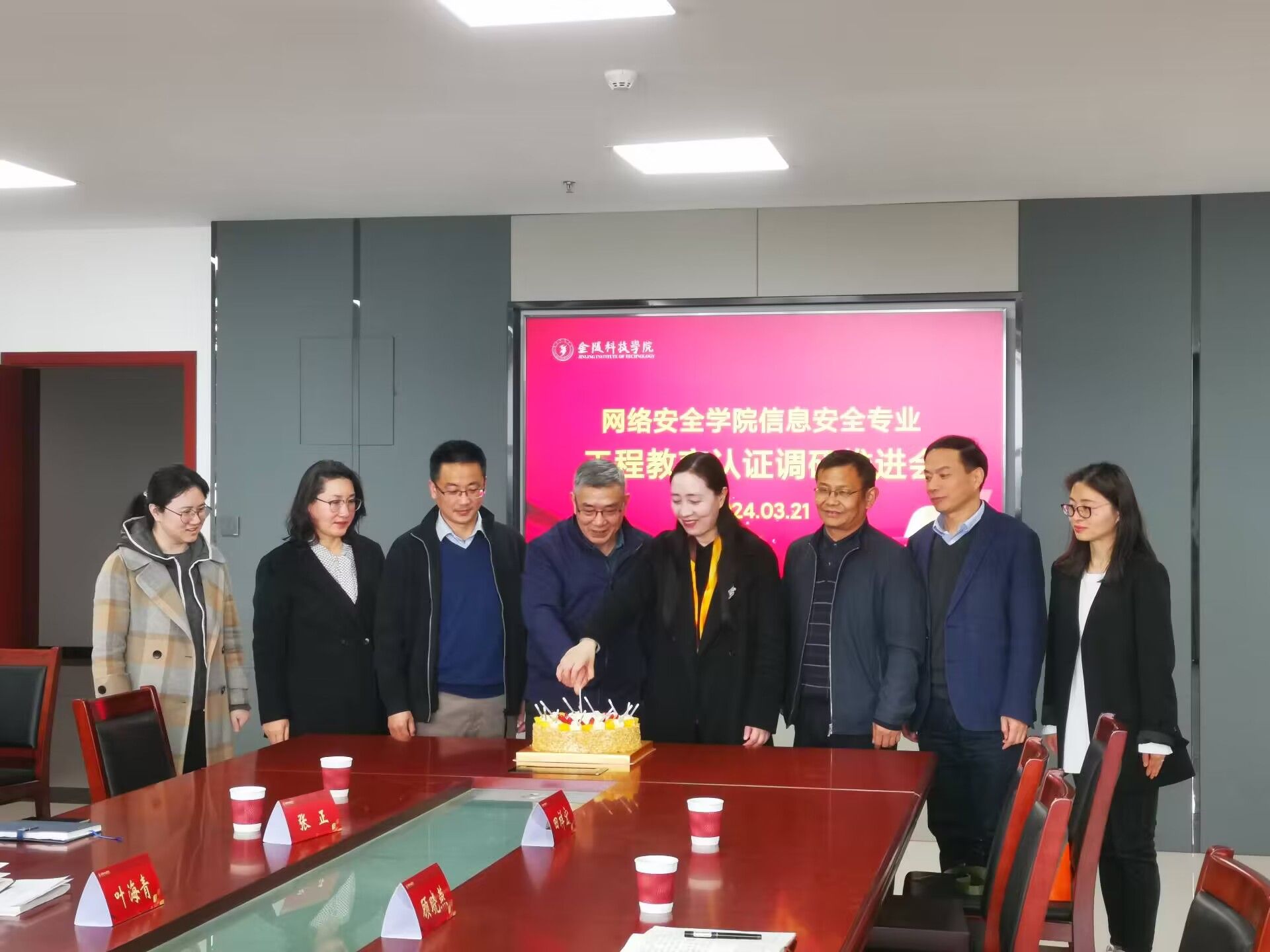 会议最后,还举行了简单而温馨的庆祝环节,为相关工作的推进凝聚了团队力量,也彰显了学院对信息安全专业工程教育认证工作的重视与信心。
