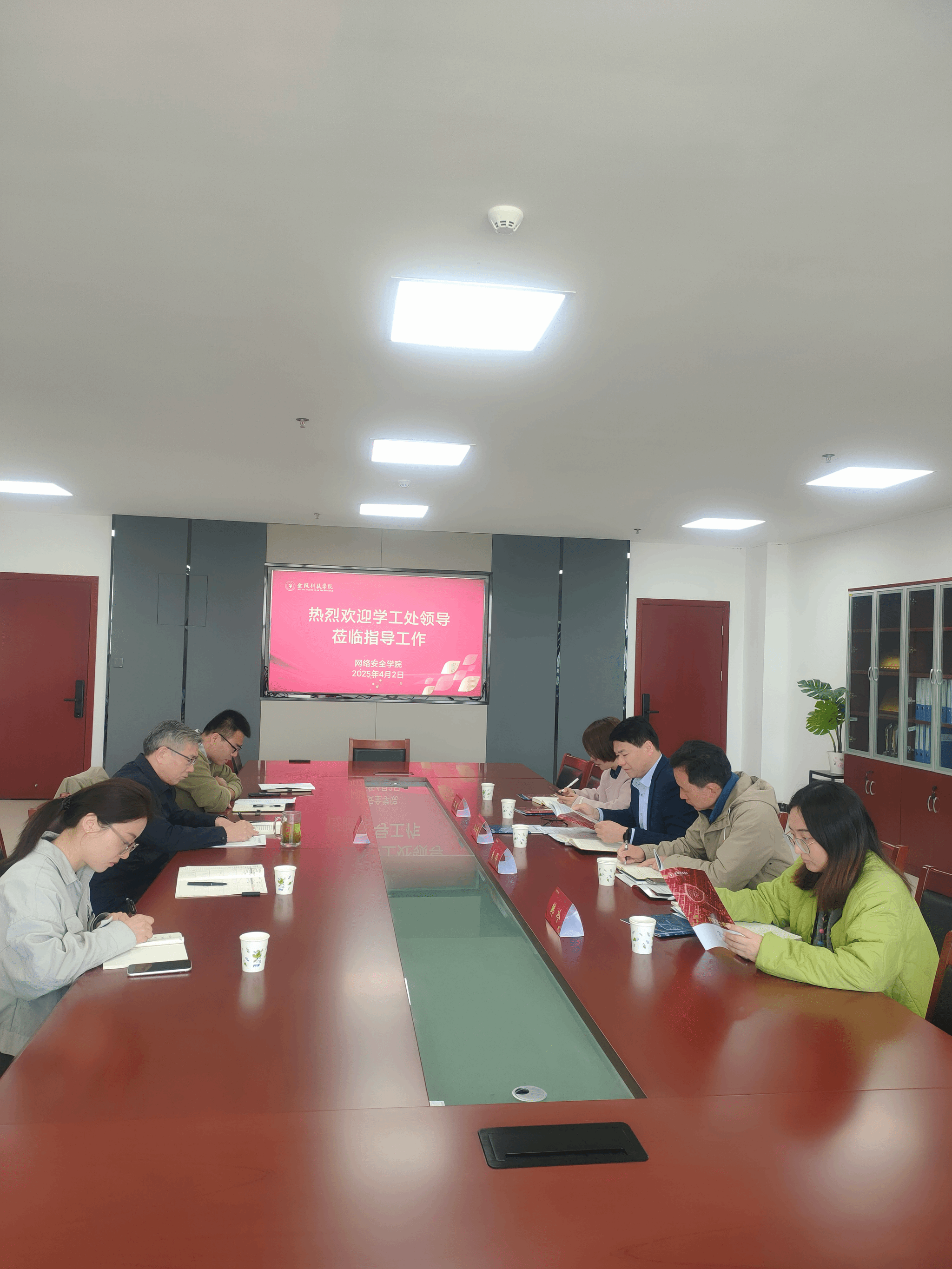 4月2日上午,党委学生工作部部长汪如春、副部长朱骅、副部长王姝、教育管理科科长韩冷到我院调研指导学生工作,院党总支书记叶海青和全体辅导员参加会议。